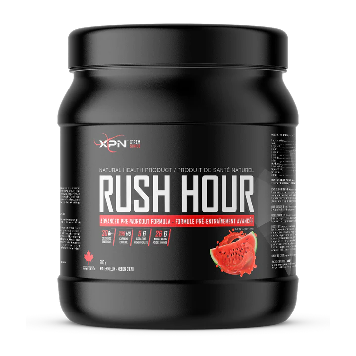 Formule pré-entraînement – avec stimulantsRush Hour surclasse toutes les autres formules pré-entraînement sur le marché. XPN est la seule compagnie qui vous donne 6 g de L-Arginine dans une seule portion.