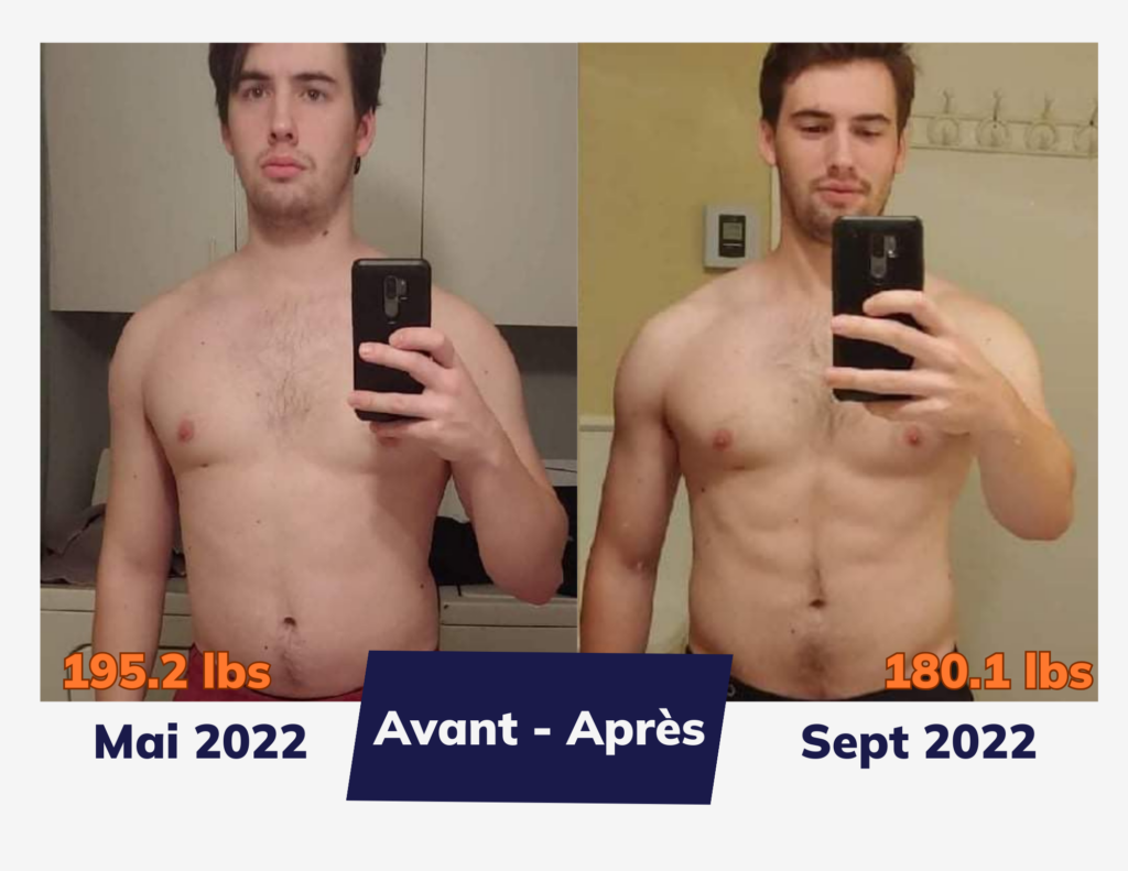 En 2021-2022, j’ai perdu mes repères, je m’alimentais très mal, je ne faisais plus de sport et malheureusement ces éléments ont eu des répercussions physiques et psychologiques. J’ai donc pris la décision de consulter l’équipe de Fen-X Nutrithérapie dans l’objectif d’avoir un plan alimentaire et d’obtenir un suivi motivant. Ils ont été en mesure d’établir un plan selon mes objectifs, mais surtout un plan qui me donne de la liberté alimentaire. Évidemment, il y a eu les changements physiques, mais mon état d’esprit est tout simplement meilleur, je me sens soutenu, j’ai beaucoup plus d’énergie et j’ai du plaisir à m’alimenter. La première étape a été d’accepter le fait qu’il me fallait de l’aide, ça n’a pas été facile, mais aujourd’hui je me remercie.